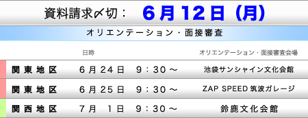 なお、資料請求及び、オリエンテーション・面接審査参加は無料です。未だ見いだされていない才能の発掘を目的にしていますので経験の有無を問わずどなたでもお気軽にご参加ください。