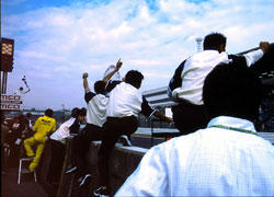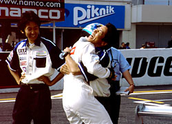予選ではコースレコードを叩き出しポールポジション獲得。 決勝でも一度もトップの座を明け渡すことなく3勝目をあげた。 絶妙なスタートは池田選手の持ち味とも言える様になってきた。鈴鹿サーキットの下り坂ではブレーキを解除するとフライングになることも有るためブレーキとアクセル・クラッチを操作する必要が有るが、今回も全く隙を与えないスタートを決める。 タイヤが暖まっていない序盤に後続を引き離すのは、最近得意の勝ちパターンでもある。序盤で3秒近くのマージンを築くが、コースアウトした周回遅れのマシンが砂利と砂をまき散らし、コースの所々が滑りやすくなり2番手以降は順位が変動するが動じることなくトップを走行する。この時少し減ったアドバンテージを後半のプッシュで3.4秒まで広げ堂々の優勝を飾った。 これで中嶋選手と並び最多優勝。最終戦に期待がかかります。 池田選手のHPもご覧下さい。 (詳しくは池田選手のHPへ→) |