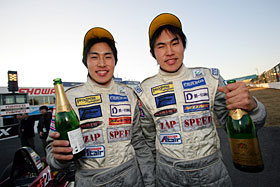 山島康二選手が2番手・ZAP SPEEDとレプリスポーツの共催で行ったENDLESSプロジェクトの東英喜選手が3番手・ZAP SPEED丸木選手が4番手に着けます。やはり鈴鹿の実力者達が上位に並ぶ中ZAP SPEEDの各選手も健闘しています。他の関東勢の頑張りにも期待したい所です。