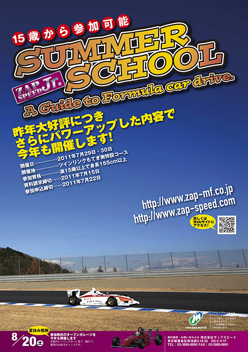 数多くのトップドライバーを輩出するZAP SPEED夏の恒例行事「サマースクール」を今年も開催します。